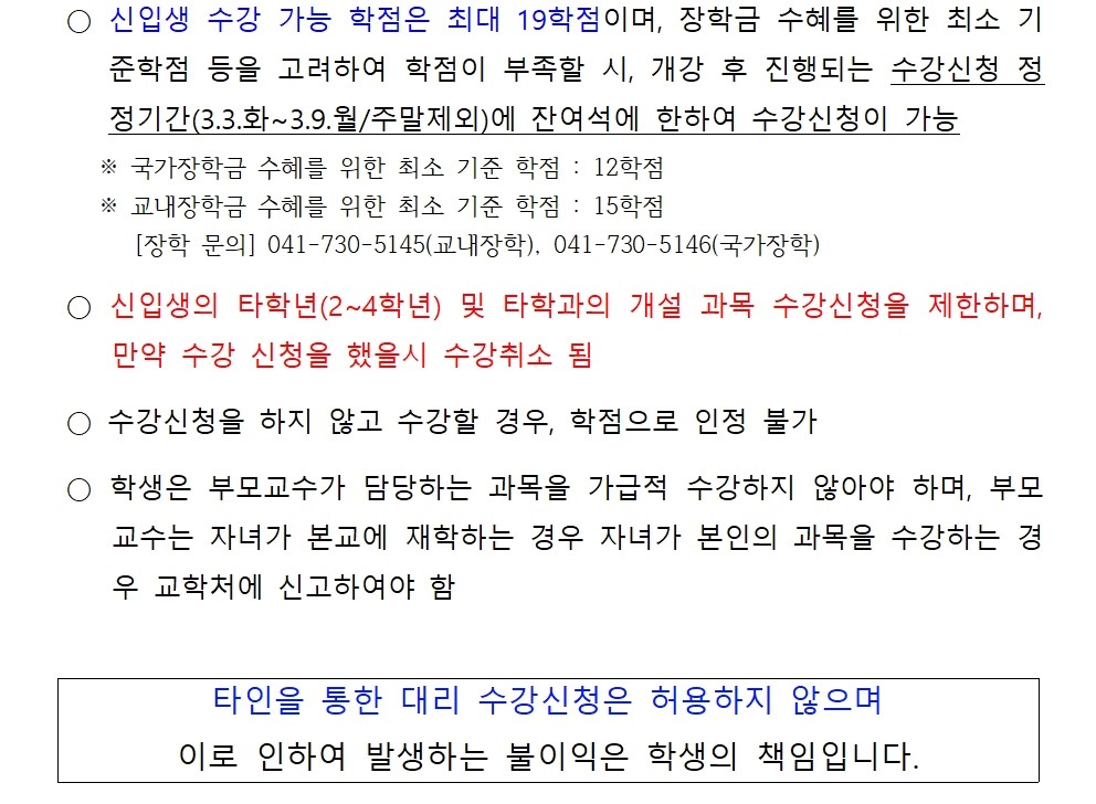 ☏ 수강신청 관련 문의 : 042-600-1655 (교학부) |