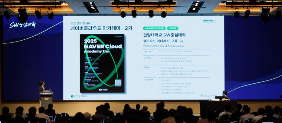 건양대학교(총장 김용하) SW중심대학사업단(단장 김용석)은 6월 19일부터 20일까지 제주 메종글래드호텔에서 열린 **‘2025 SW중심대학 워크숍’**에 참가해, 산학연계형 실무 클라우드 교육 프로그램인 ‘네이버클라우드 아카데미’ 운영 성과를 발표했다.