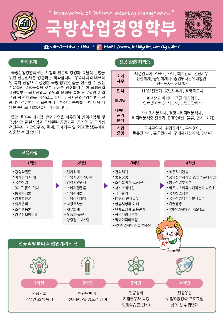 2026학년도 국방산업경영학부 입시브로슈어 글의 상세내용