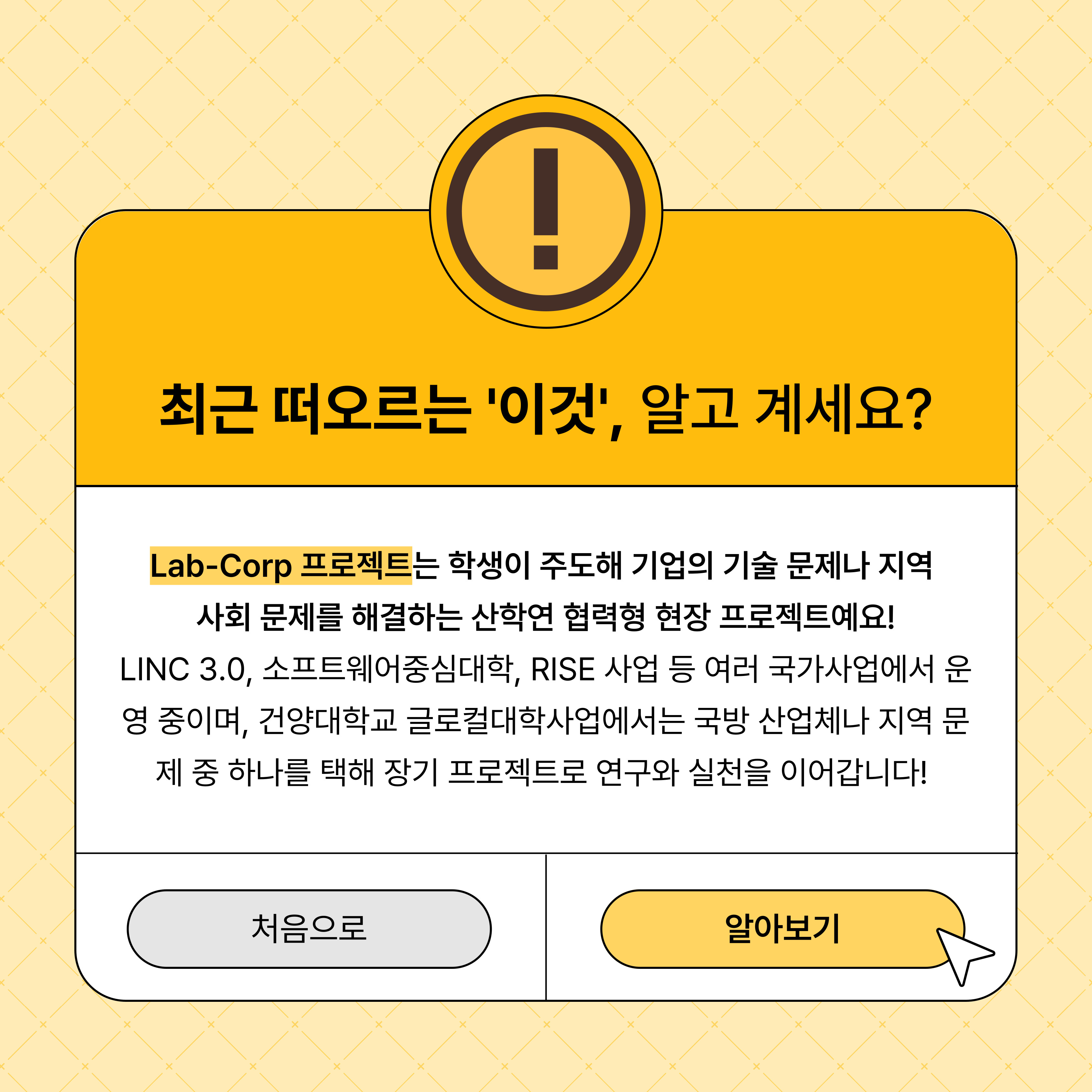 『 [카드뉴스] 글로컬대학 사업 Lap-corp 소개 』글의 상세내용을 확인하는 표로 제목, 부서명, 등록일, 조회, 첨부, 내용으로 나뉘어 설명합니다.