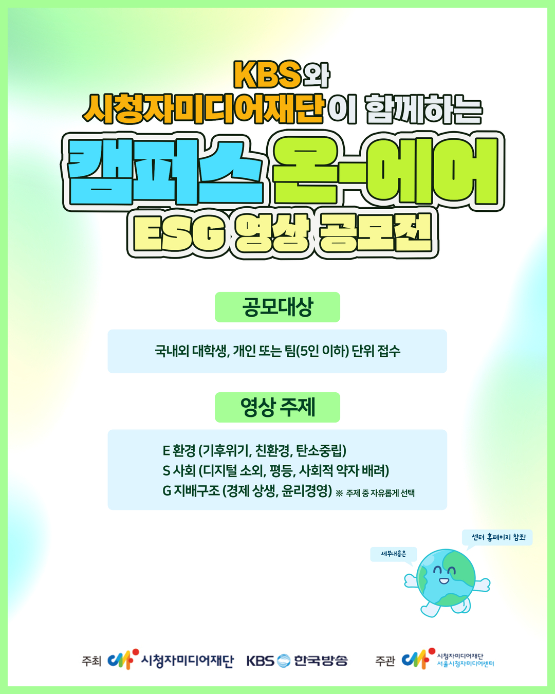 KBS-시청자미디어재단 공동주최 <2025 캠퍼스온에어 ESG 영상 공모전>