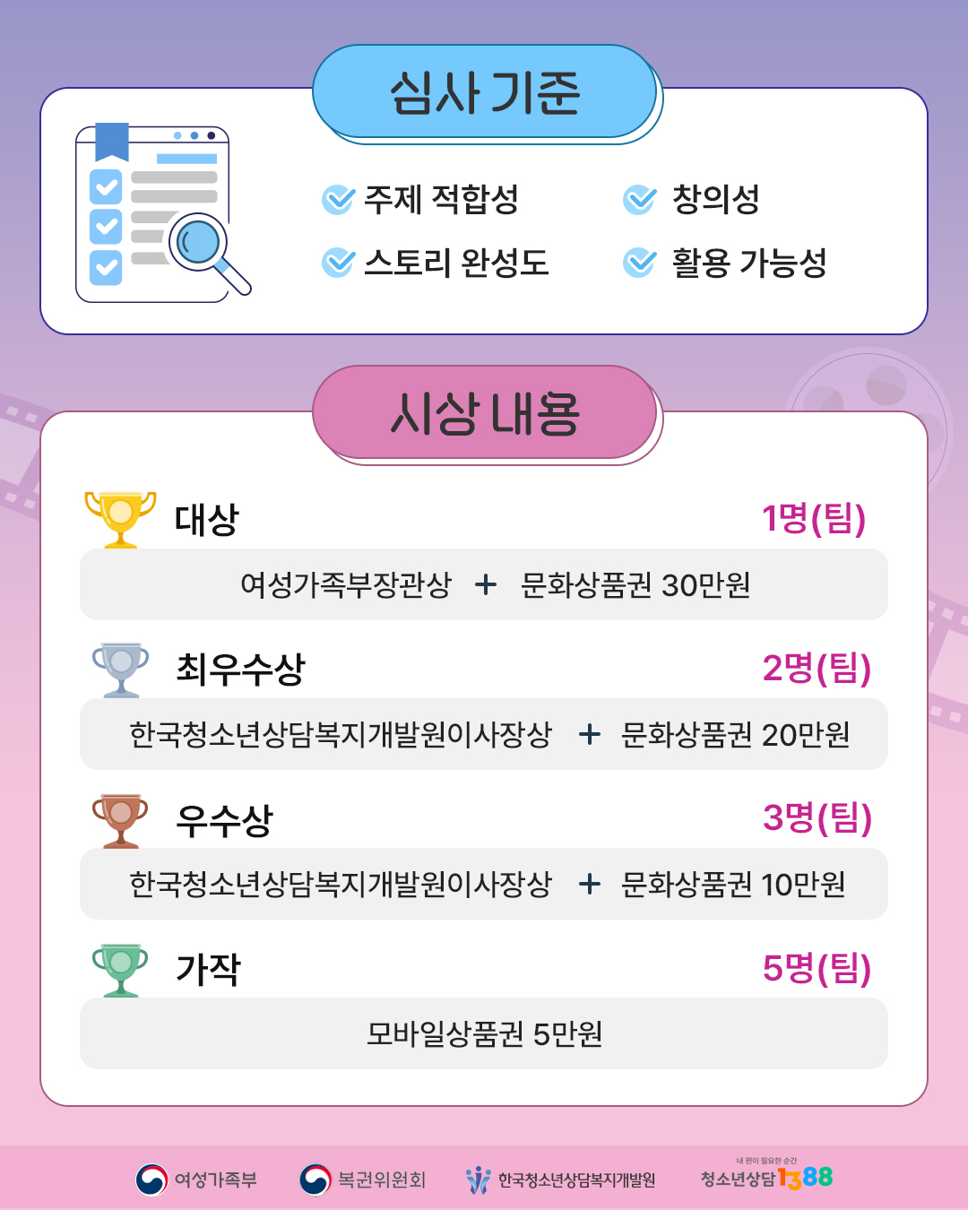 공모대상: 대한민국 9세 ~ 24세 청소년 및 보호자 (개인 또는 팀 단위 가능)